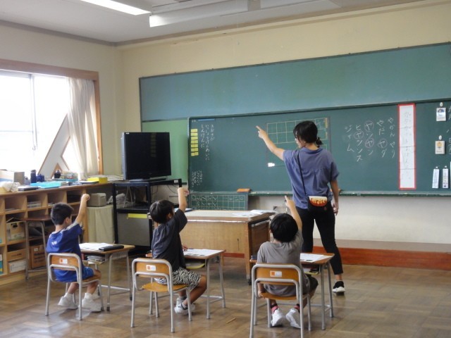 1年生は、国語科で片仮名の学習をしています。指で筆順を確かめながら、丁寧に文字を書いていました。