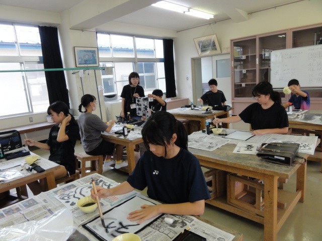 6年生は、墨を使って水墨画に挑戦しました。水の量を調節して、墨の濃淡やぼかしをいろいろ試し、おもしろさを感じながら、表現を工夫していました。