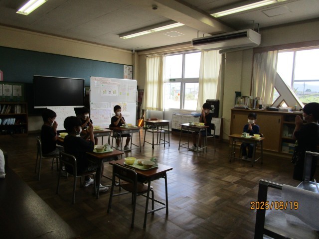 各教室では、放送を聞きながら、今日も和やかに給食を食べています。