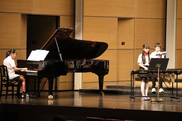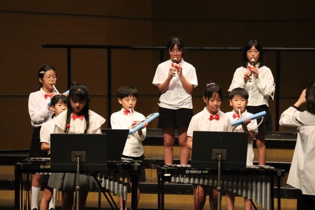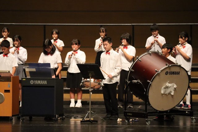 テンポのいい演奏に、会場で聞いている他校の子供たちをノリノリにしていました。