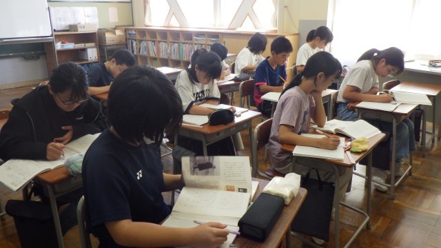 国語科では宮沢賢治の「やまなし」を学習しています。今日は資料「イーハトーヴの夢」や宮沢賢治の作品を読んで、宮沢賢治の生き方や考え方を探りました。