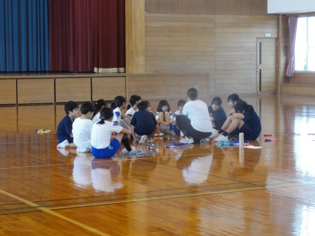 4年生の子供たちは、大技に挑戦しています。うまくできなかった時には、どのようにすればうまくいくかをみんなで話し合い、見直ししながら、上達するようにがんばっています。