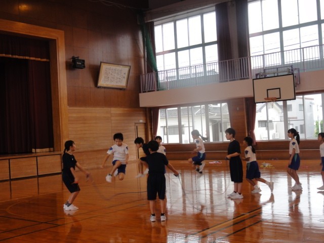 4年生は、大技に挑戦しています。練習を続けてきて、技がずいぶん上達しました。縄に入るタイミングを考え、リズムよく跳べるようになってきました。