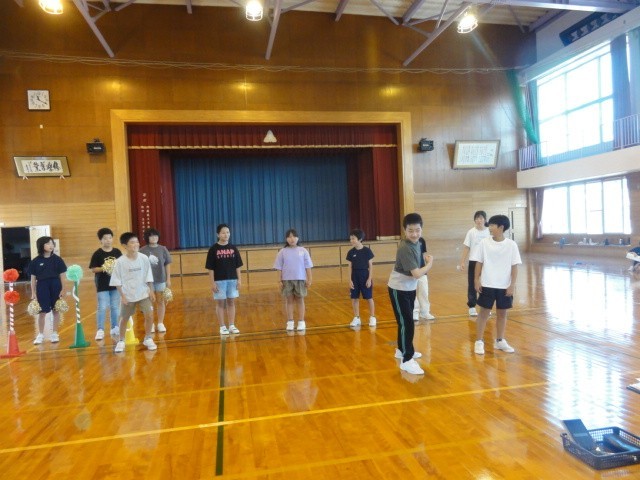 5・6年生は、閉校記念なわとび発表会を盛り上げるための進行を工夫しています。地域や保護者の方に楽しんでもらうため、劇を取り入れ、楽しさが伝わるように練習をがんばっています。