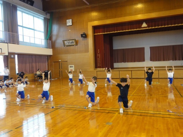 4年生は、上学年になって難しい技に挑戦しています。大きな声でしっかりとポーズをとったり、みんなで息を合わせて長縄を跳んだり、これまでの練習を積み重ねてきたことで、表現や技がとてもよくなっています。