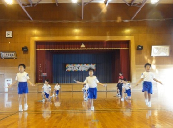閉校記念なわとび発表会の予行で、1~3年生は短縄による個人技を発表します。下学年の子供たちは、難しい技に挑戦して、とても上達しています。