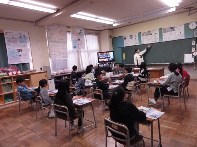 4年生の社会科では、防災について学習しています。総合的な学習の時間に、地域について学習課題をもち、地域の方々とのつながりについて子供たちは見出しています。防災についても、総合的な学習の時間で調べたことや見付けたことと関連させ、地域の方の関わりを考えていました。
