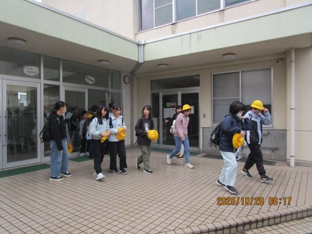 6年生は、5年生に見送られて4校合同交流活動に出かけました。タクシー2台に分乗して出発です。