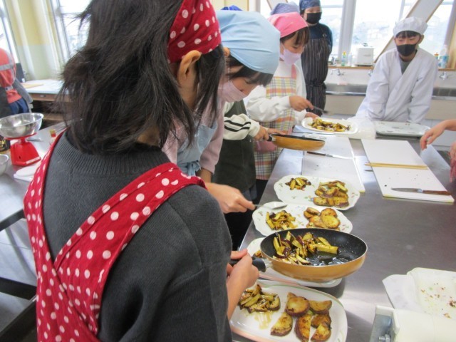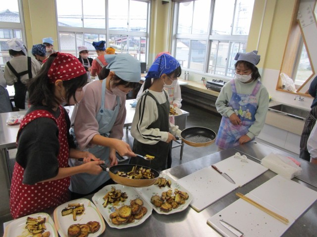 全校みんなで掘ったさつまいもで、大学いも・天ぷら・スイートポテトを作りました。