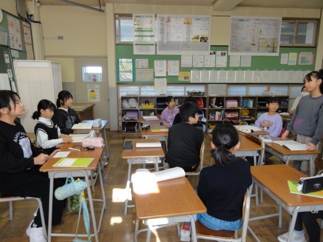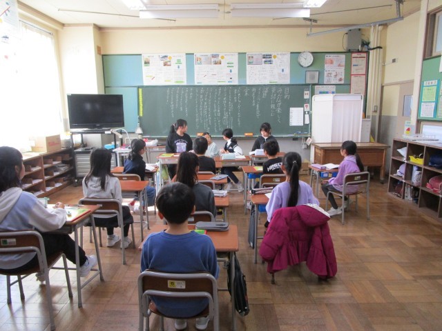 国語科では「クラスみんなで決めるには」の学習をしています。4年生では、実際に議題を決め、それについてクラス全体で議論をしています。今回は、前回の反省や改善点を生かし、同じ議題で再度話合いをしました。今日は、声の大きさや聞く態度などに気をつけたり、説明の内容を工夫して分かりやすく伝えたりする子供の姿がたくさん見られました。
