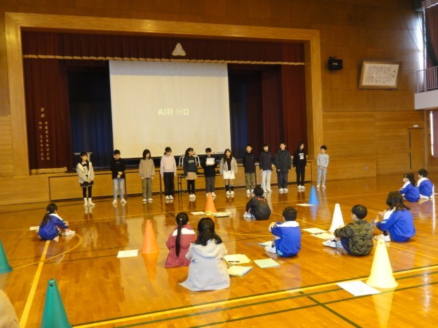 5・6年生は、11月29日に開催する水橋東部小学校閉校記念フェスティバルに向けて、一生懸命準備をしています。今日は、フェスティバルで行うクイズやゲーム等を4年生に参加してもらい、アドバイスをもらう時間を設けました。5・6年生は、自分が担当するクイズやゲームについて、地域の方との交流を通して自分の願いや思いが伝わるように話していました。4年生は、5・6年生の進行や活動について、よい点や改善点について見付けていました。