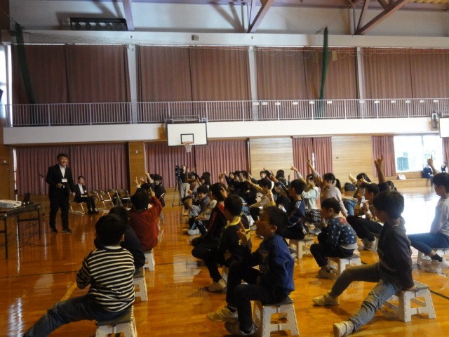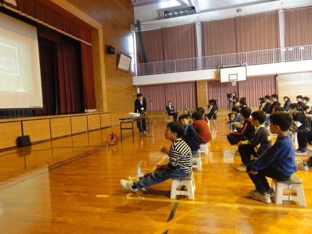 水橋学園に統合された後は、スクールバスを利用して登下校します。スクールバスの乗り方や約束について、クイズ形式で答えながら楽しく学習しました。子供たちは、教育委員会の方の話をしっかりと聴き、スクールバスの乗り方を学んでいました。