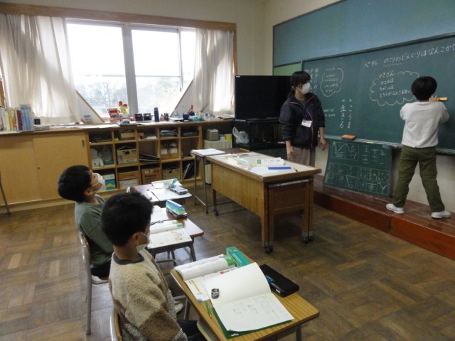 1年生は、算数科でひき算の学習をしています。どのように計算をしたのかについてブロックを使いながら友達が説明し、子供たちは計算の仕方を確認していました。
