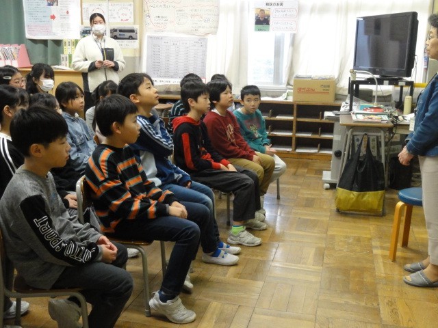 読み聞かせの時間では、子供たちは読み聞かせの会の方の話をじっくりと聴いていました。お話が終わった後、「高学年の子供たちがしっかりと最後まで話を聴いてくれました」「子供たちが『楽しかった』と言ってくれて、うれしかったです」と読み聞かせの会の方がおっしゃっておられました。