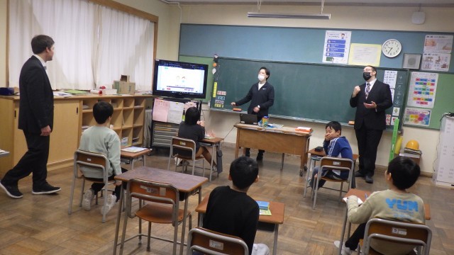 ALTの先生、イマージョンALTの先生と一緒に外国語活動をしました。英語の歌をリズミカルに歌ったり、アルファベットかるたを楽しんだりしていました。