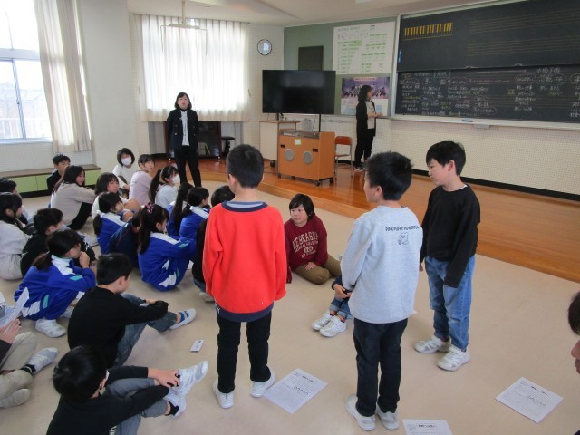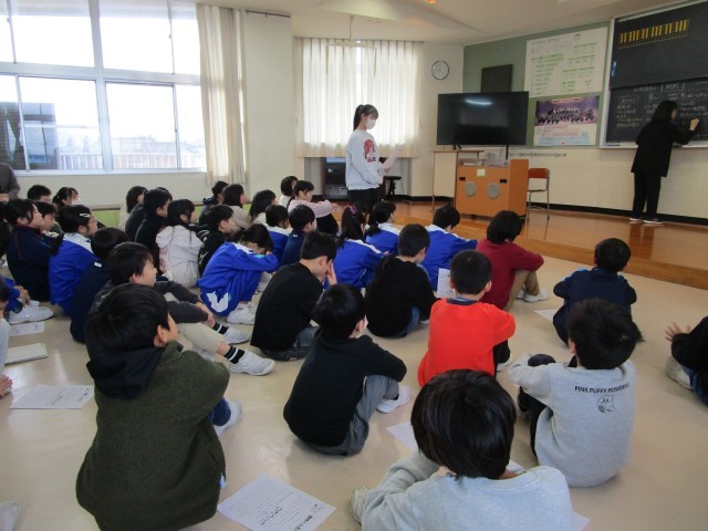 啓明タイムに全校児童で集まって、水橋東部小学校閉校への思いを伝えあいました。