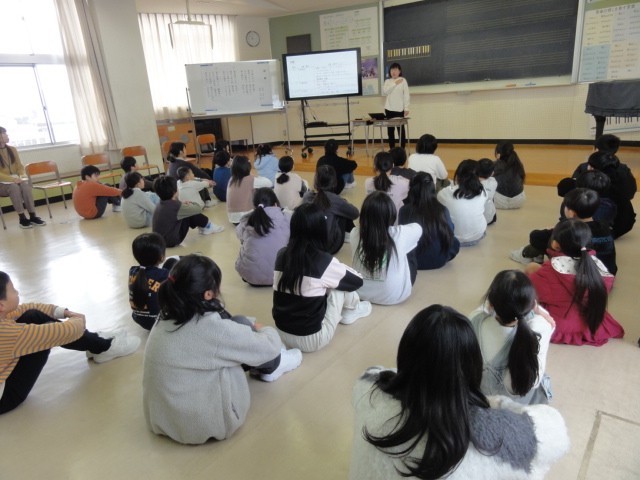 1月16日に、3年生以上はスキー学習を行います。スキー学習に向けて、日程や持ち物等について話を聞きました。どの子供も姿勢よく、しっかりと話を聞いていました。