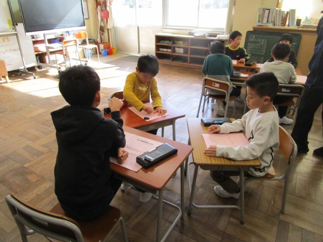 2年生は1年生に書き方を教えてあげながら、話し合いを進めていました。