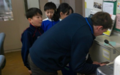 全校に英語に親しんでもらうため、昼の放送を4年生がALTの先生と一緒にしています。子供たちが知りたい表現を4年生が取り上げ、ALの先生が英語で言ってくださいます。英語によるいろいろな言葉を知ることができて、楽しい時間になっています。