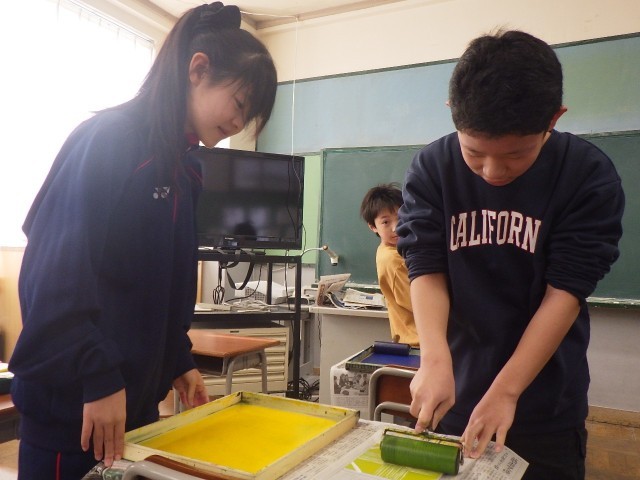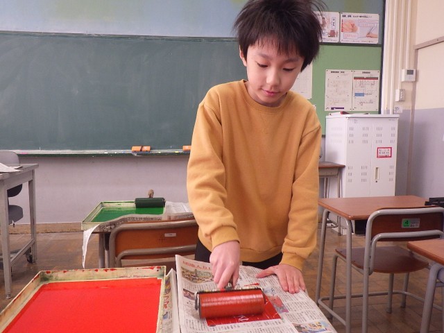 2月9日(月)5年生 一版連結版画に挑戦