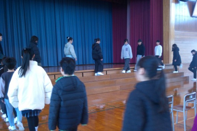 閉校式に向けて、全校で練習をしました。体育館で、初めて動きを確認しました。ひな段に立った子供たちは、しっかりと前を向き、練習に臨んでいました。どの子供も、真剣に取り組んでおり、閉校に向けて、一人一人が思いをもって練習していることが伝わってきました。