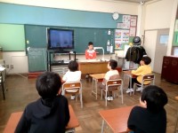卒業式では、1~5年生は「こころが今日も笑顔」を歌います。1~5年生たちの歌う声が、音楽室から響いてきました。先生から歌うときのポイントを聴き、子供たちは、声をしっかりと出して歌っていました。