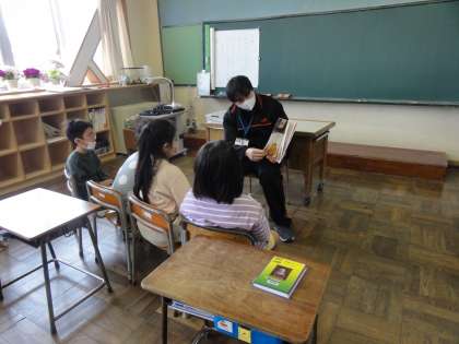 清掃後の10分間は、読書タイムです。子供たちは、自分の読みたい本を手に取り、集中して読書をしていました。先生が読み聞かせをしている学級もありました。今後、いろいろな本を読み、読書が好きになってくれればと願っています。