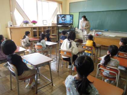 朝活動(啓明タイム)に、スクールサポーターとALTの先生をリモートで全教室に紹介しました。1年生にとって、入学して初めてのオンラインでの交流となりました。