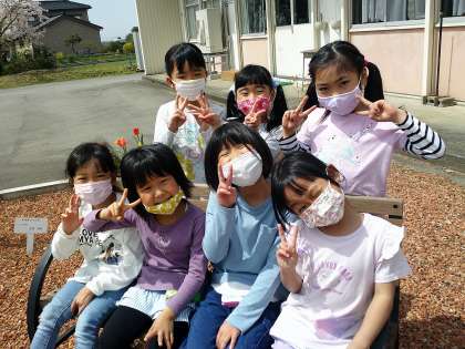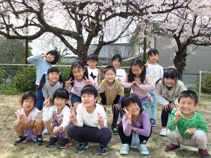 校庭にある大きなサクラの木の下で写真を撮りました。みんなとてもすてきな表情をしています。