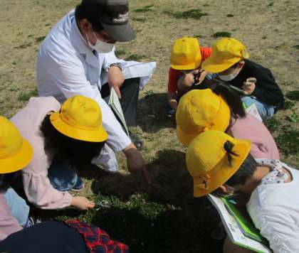 初めての理科の授業でした。理科専科の先生と一緒に春の生き物を観察しました。