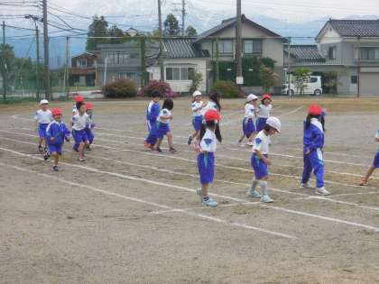 1、2年生は、合同でリレーのバトンパスの練習をしています。