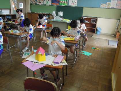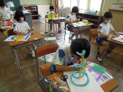 3年生は、図工科で、思い思いの「くるくるランド」を作っています。