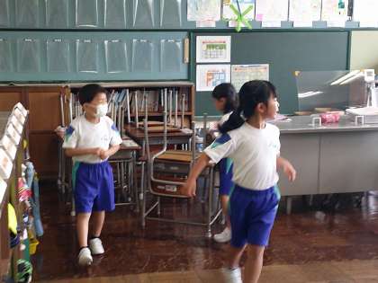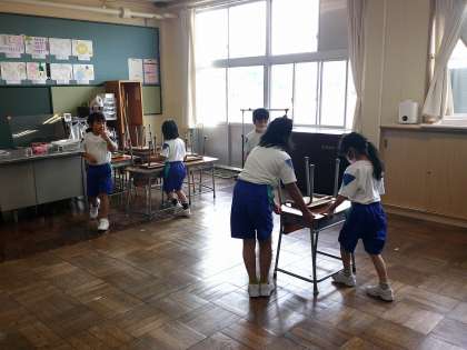 今日は、昼休みに赤団の応援練習がありました。白団は、赤団の友達の分も机を運び、すぐに掃除に取りかかれるようにしてくれました。自分たちから進んで「赤団の友達のも動かそうよ」と声を掛け合える1年生、とてもすてきです。