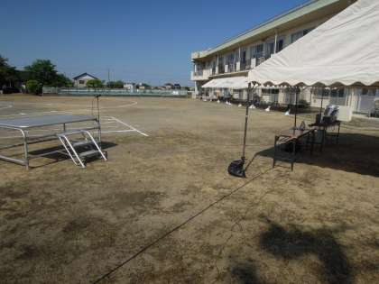 今日は運動会の予行です。グラウンドの準備は整いました。さあ、張り切ってがんばりましょう!