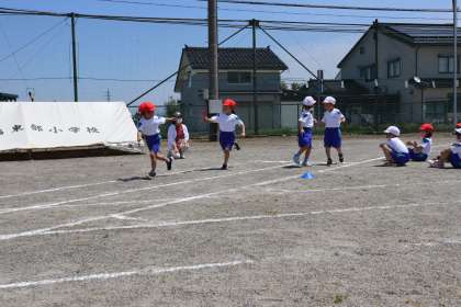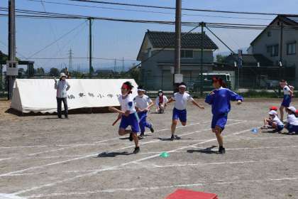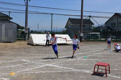 抜きつ抜かれつ。今年の「全校リレー」はどちらが勝つか、全く分かりません。