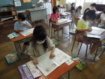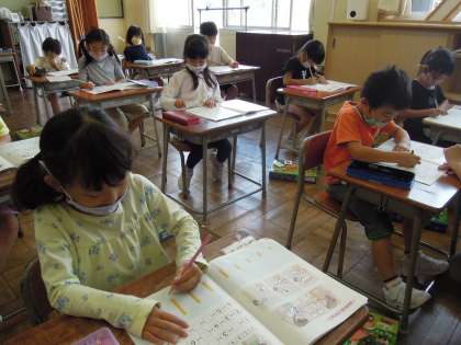 運動会から気持ちを切り替えて、1年生は落ち着いて算数の学習をしています。