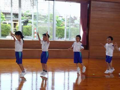 体育科では「リズム遊び」をしました。音楽に合わせて体を動かしました。