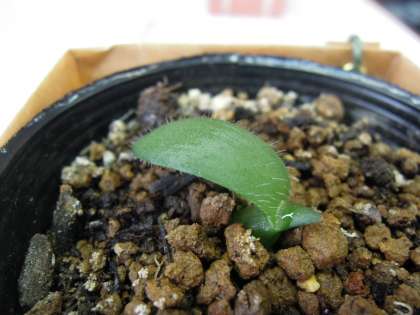 現在のマユハケオモトの様子です。 すっかり種が消え、本葉が地面水平にそり返ってきました。