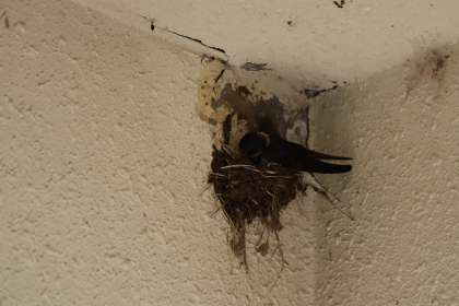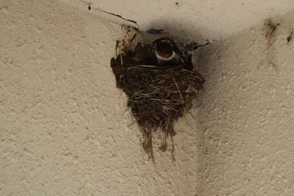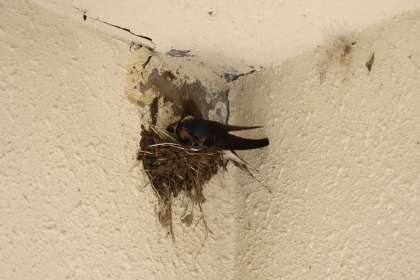5月末に巣立っていったツバメたち。そう思っていたら、先週、新たなペアが以前の巣のそばに巣を作り始めました。今週はじめには完成しました。