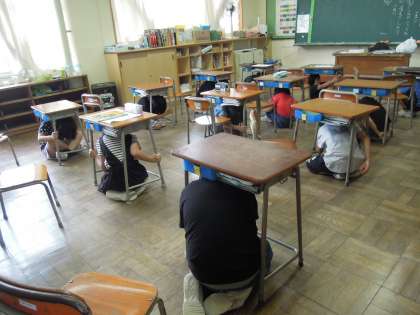 1、2年生が学童保育(児童健全育成)利用中の避難訓練をしました。ここ2日間立て続けに起きている地震を想定した訓練です。学童保育指導員の方も真剣そのもので、緊張感をもって訓練を行うことができました。