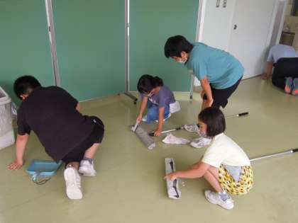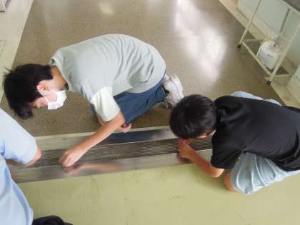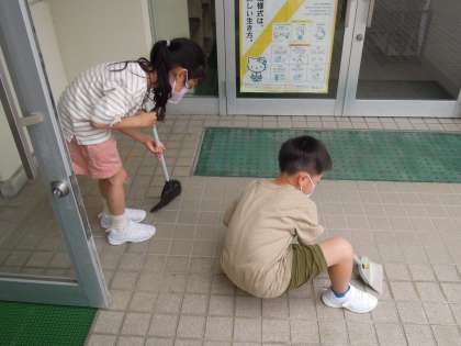 日頃の掃除でできない場所をきれいにする子供たちです。