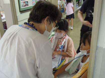 1年生は生活科で「もっとくわしくしりたいな」という学習をしています。最近は、職員室に来て「なぜ先生になったのか?」「いつもどんな仕事をしているのか?」など、積極的に教職員にインタビューをしています。