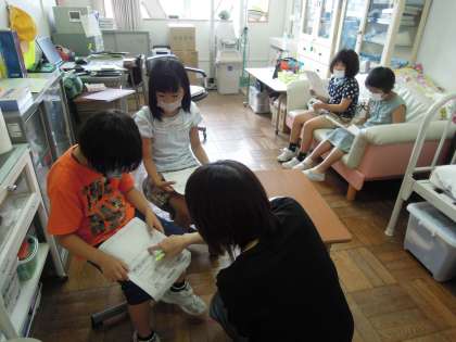 明日から2日間、5、6年生は宿泊学習に出かけ、学校を留守にします。本校では、最高学年は3年生となります。今日、保健室では、毎日5、6年生が行っているお昼の校内放送をするために、原稿を読む練習を繰り返していました。3年生、学校のことをよろしくお願いしますね。