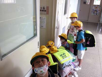 トイレのスリッパが乱れているのに気付き、並べてくれている1年生。自分から進んで、学校のために動くことができる子供たちに、感心しました。1年生のおかげで、次の人が気持ちよく利用できますね。ありがとう1年生!