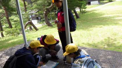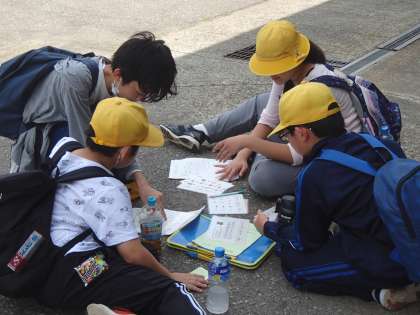 二日目の午前の活動では、お宝さがしをしました。子供たちは班の仲間と協力して暗号を解きお宝を手に入れていました。活動後には、お宝のアイスキャンディを友達と仲よく食べました。
