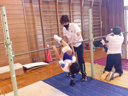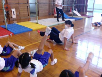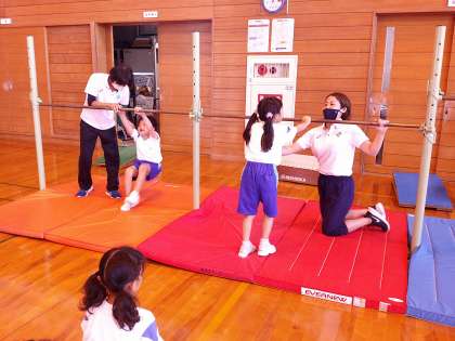 今日の体育は、スポーツ指導員の先生に来ていただき、鉄棒運動をしました。逆上がりができるようにいろいろな練習方法を教えていただき、何度も練習しました。子供たちは、鉄棒の楽しさを感じたようで、「まだやりたい」「また練習したいな」と意欲たっぷりでした。