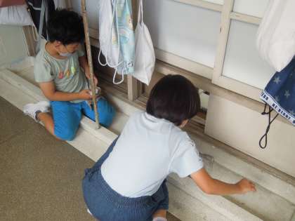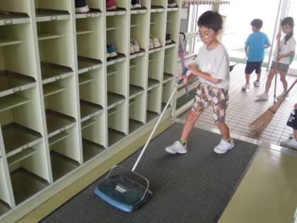 今日水曜日は、縦割り清掃の日。子供たちは、普段のそうじでは行わない場所を、進んできれいにしていました。