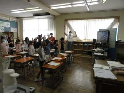 本校と水橋中部小、水橋西部小の1年生・2年生が、3校合同でオンラインによる交流をしました。3校それぞれの各学級が、学級目標や好きな遊び等について紹介しました。初めてオンラインで交流しましたが、子供たちは交流の時間をとても楽しんでいました。