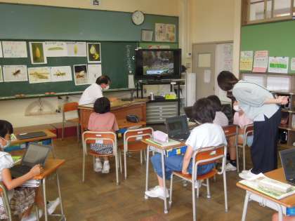 夏休みの課題(自由研究)の意欲付けになたことでしょう。3年生は理科専科の先生とどんな科学研究があるか調べたり紹介していただいたりしました。