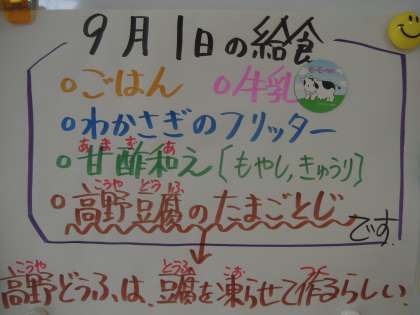 9月1日(木)の給食